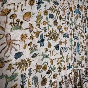 Cream tone Octopus, frogs, bugs,butterflies, plants, and mushrooms throughout