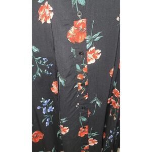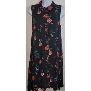 Kimchi Blue Black Floral Button Front A-Line Mini Dress Large Sleeveless