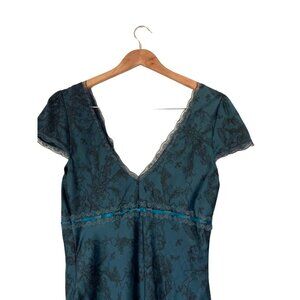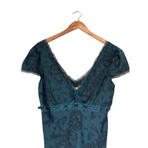 Kimchi Blue Cora Lace-Trim Asymmetrical Midi Dress Navy Cherub Print L
