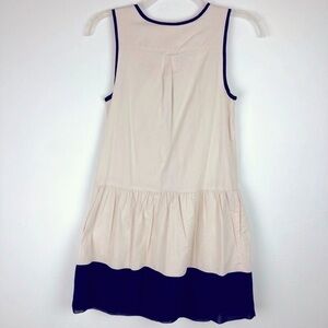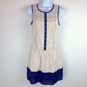 Kimchi Blue cream-colored drop-waist dress with pockets, black chiffon trim at neckline, placket and 6 inch semi sheer hemline. Dress is fully lined, see second to last picture where dress is inside-out.