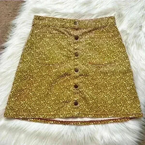 Cute front pockets. Brown and cream floral print. Button closure front. A light denim like material. 2% spandex for a very light stretch. No flaws.