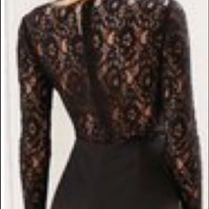 Urban Outfitters Kimchi Blue Lace-Yoke Romper "Long sleeve romper with a faux sweetheart neckline + floral lace yoke, sleeves + back by romantic-femme label Kimchi Blue. Fitted at the bodice with princess seams + shorts that taper out toward the bottom