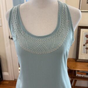Kimchi Blue light blue sleeveless dress featuring intricate embroidery. Side zipper. Size S. Measurements are 15.5” from armpit to armpit and 32” long.