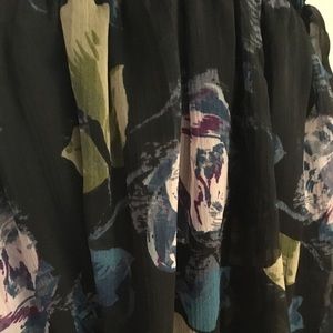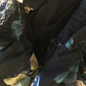 Amazing Deep Colors of Black, blue, green, pink, purple make this strapless mini dress stand out! Would be very Mini. I prefer it with jeans or leggings. But either way it is a showstopper. Zipper down the side. Hook and eye could use some reinforcing. Excellent used condition.