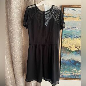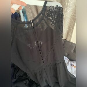 Kimchi Blue Mini Dress Women Sz 10 Black Embroidery Button Lace Sleeve Chiffon