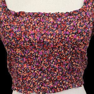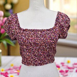 Kimchi Blue ✦ Puff Sleeve Floral Crop Top ✦ Smocked Cotton Cottagecore Blouse M