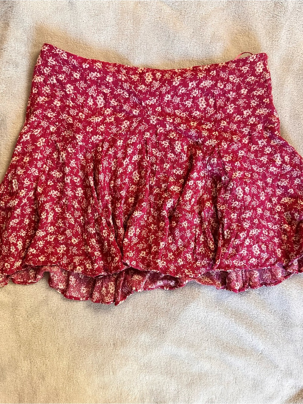 Kimchi Blue Raspberry Pink Floral Ruffled Mini Skirt