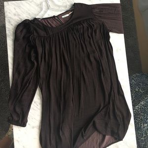 It's dark purple, and I wish I could wear it but it's slightly too short for me. It is good for formal or casual wear. Silky material.