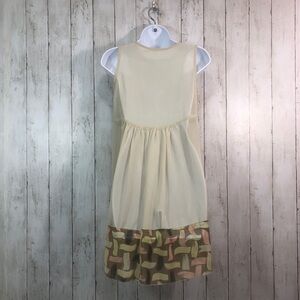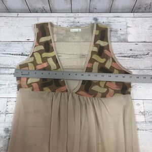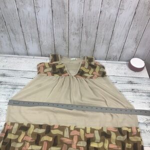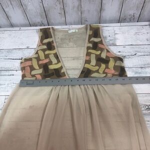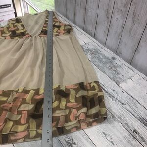 Green, multicolored at bottom and top, sheer, sleeveless, v-neck,tunic/dress, colors may vary due to lighting, good used condition, Sz: XS