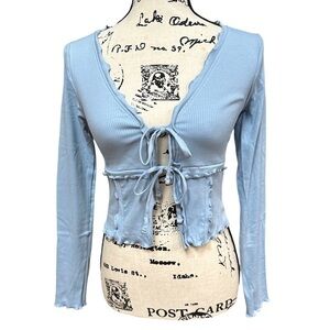 Kimchi Blue Urban Outfitters Light Blue Ribbed Ruffled Top XS