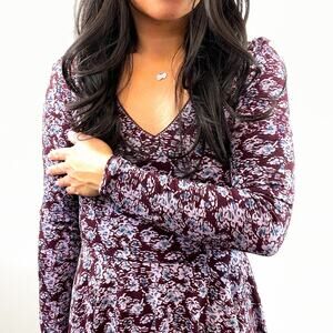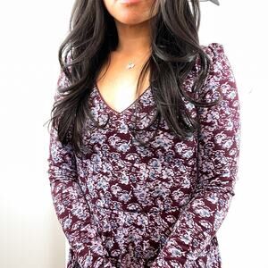 Lace-up back Lightweight and very stretchy V-Neck Maroon with purple floral print No flaws