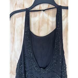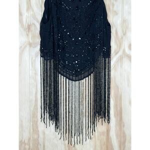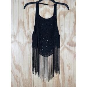 Kimchi Blue Whimsy Boho Glam Black Beaded Tassel Crop Top Open Back Large