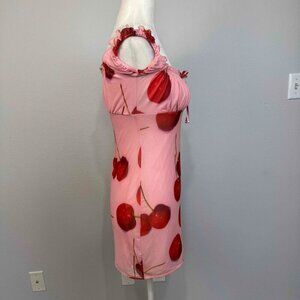 NWOT Kimchi Blue Women's Cherry Print Bianca Mesh Mini Dress Summer Date Night Pink