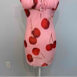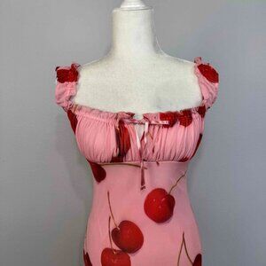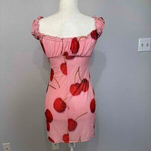 NWOT Kimchi Blue Women's Cherry Print Bianca Mesh Mini Dress Summer Date Night Pink
