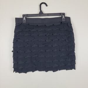 Kimchi Blue mini skirt from Urban Outfitters in black, women’s size M, featuring soft tiered ruffle texture and an easy pull-on elastic waist.