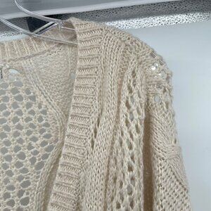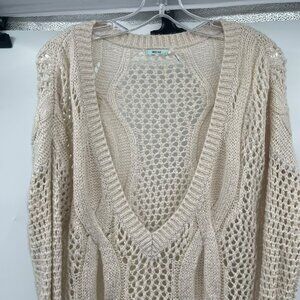 Kimchi Blue Womens Open Knit Sweater Deep V-Neck Cream Size Medium