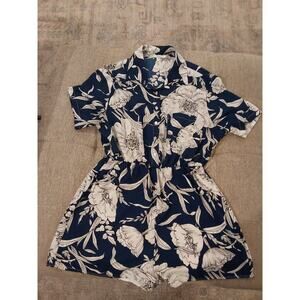 Kimchi Blue Womens Sz Med Floral Romper Collared Shrt Slve Elastic Waist No Belt