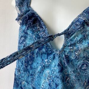 Kimchi Blue Y2K Regencycore Paisley Mesh Blouse with ruffle details and asymmetrical hem - NWOT