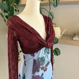 Kimchi Blue Y2K Sheer Floral Lace Mesh Mini Dress M Burgundy Romantic Grunge