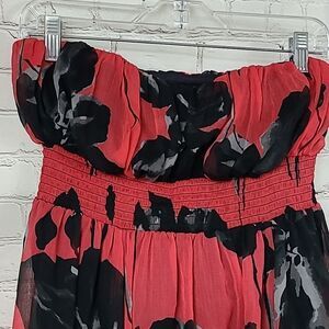 Kimchi Blue Chiffon Strapless High/Low Smocked Red Floral Party Dress Urban Outfitters