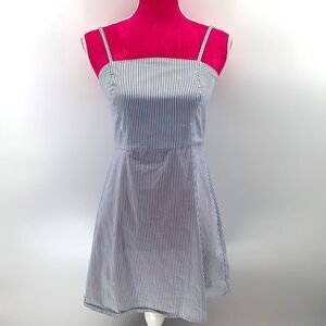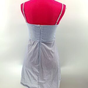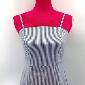 This blue and white striped sundress has adjustable straps and a light cotton feel with a touch of stretch!