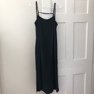 Really cool strappy Kimem dress in size 2. Good loose comfortable fit for small or medium. Slits on bottom and side zipper in great condition. Hidden bralette. Silky feel, 100% cotton. Made in the USA!