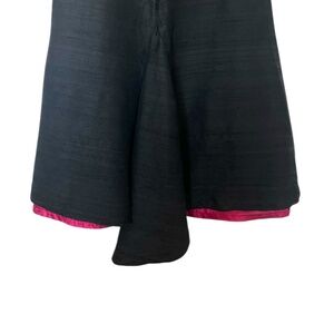 Kimera Black Silk Shantung Asymmetrical Midi Dress with Pink Poly Lining Size S