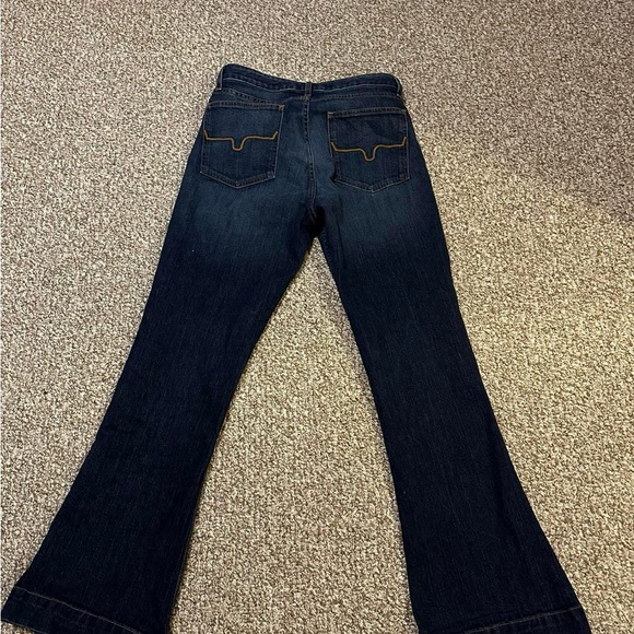 Experience timeless style with Kimes Ranch high-rise jeans in a classic blue hue. These jeans feature a flattering flared silhouette, offering a perfect blend of comfort and elegance. Ideal for any casual occasion, they are crafted from medium-weight denim for a durable and stylish look.