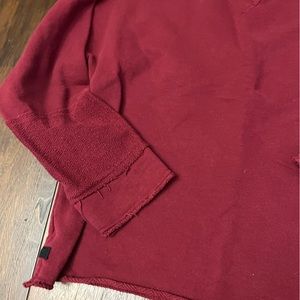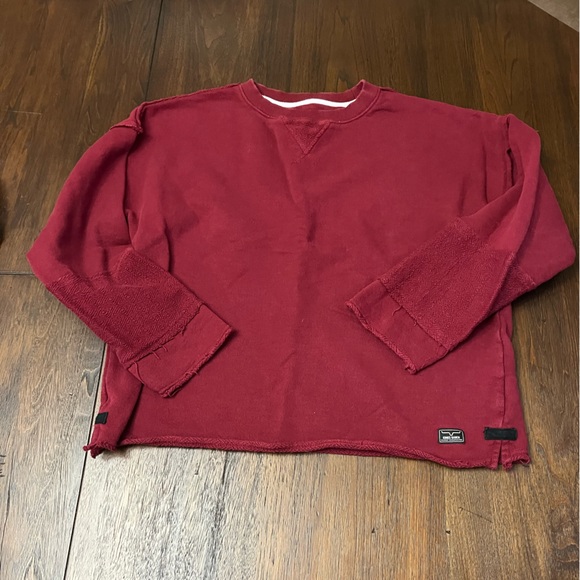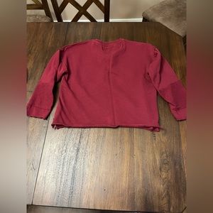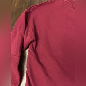 Cozy red sweatshirt. Features ribbed cuffs and hem. Perfect for casual wear.