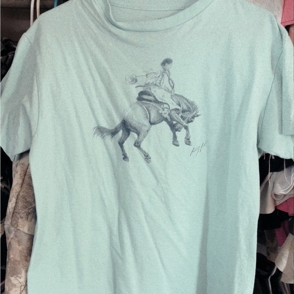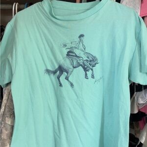 Light green tee with a dynamic horse graphic. Ideal for casual wear.