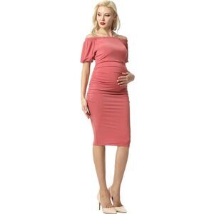 Kimi + Kai Maternity "Becka" Convertible Shoulder Ruched Dress size S NWOT