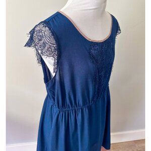 Kimi + Kai Navy Blue Maternity Nell Lace Trimmed Colorblock Dress