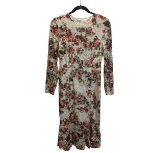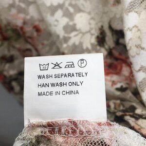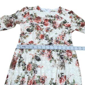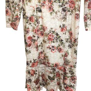 Kimilily Dress Womens Medium White Floral Lace Overlay Long Sleeve Ruffle Hem