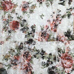 Color/Pattern: White base with multicolor rose floral print