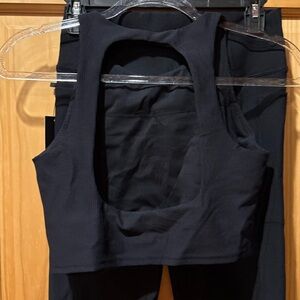 Kimith “I am confident “ ribbed cropped tank top or ribbed cropped sports bra with a high neck and a keyhole or open back design XL women’s. Kimith ribbed crossover leggings with side pockets XL women’s. NWT see measures to insure this set will be the correct fit for you. Thanks for looking!