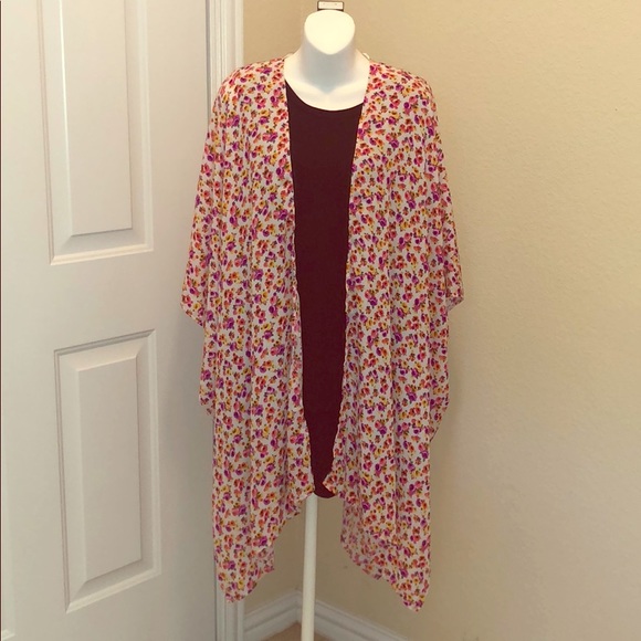 Gorgeous floral oversize kimono. Excellent condition. The perfect layering piece if you need to add some color! This particular size would work well for 16 - 24. Boxy oversized fit.
