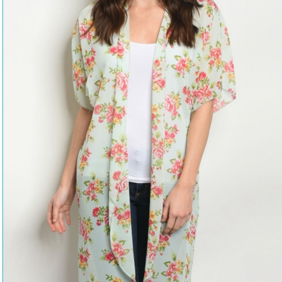 This Mint Floral Kimono is sheer and perfect for Spring!