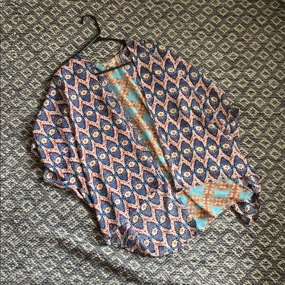 Fun colorful kimono. Shorter in the front. Cute with jeans and a tank or wear over a dress.