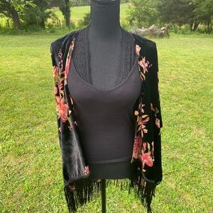 Add an elegant touch with this velvet kimono one size fits most. 5’5 140 pounds.
