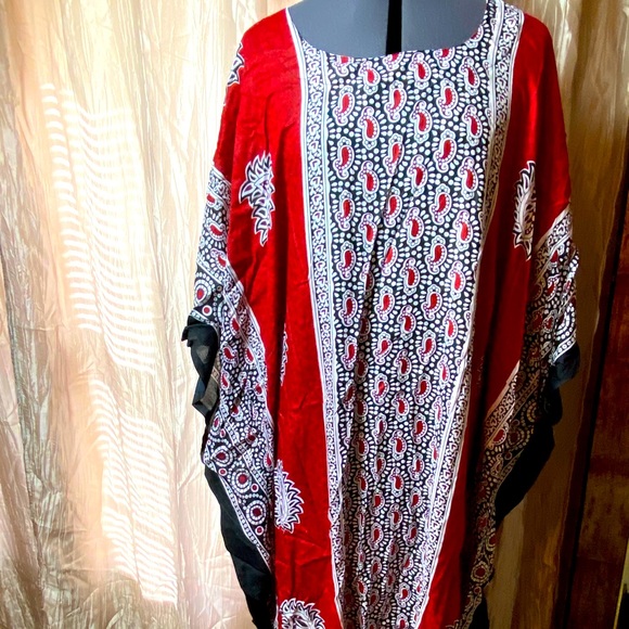 Hippie boho deep red and black kimono dress