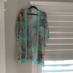 Chico multi colored floral kimono in beautiful colors for spring and summer. It has been worn twice and trying to make room for new items. The