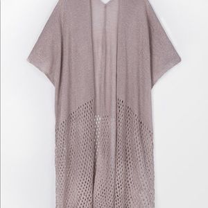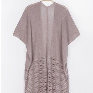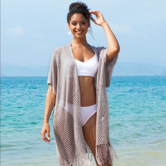Royal Fringe Hem Kimono. Features an open front design with fun fringe hem. The perfect kimono to wear on and off the beach. Sparkly grayish purple color. New with tags!