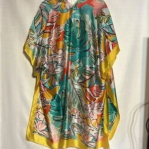 Beautiful, lightweight, kimono, pink, yellow blue white background, and perfect for any day