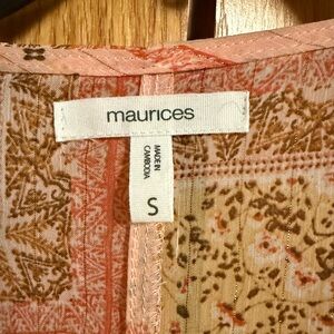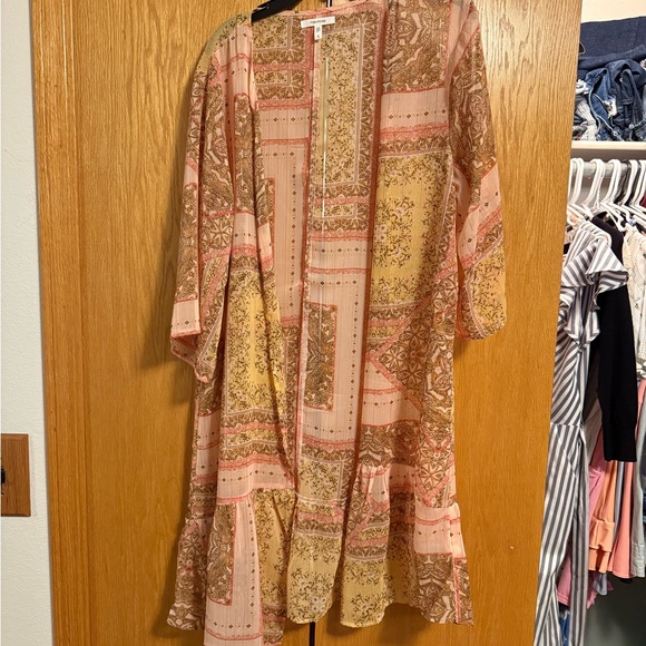 Chic kimono with a patchwork pattern. Earthy hues and lightweight fabric. Pink and gold tones. Lightweight and comfy Worn once