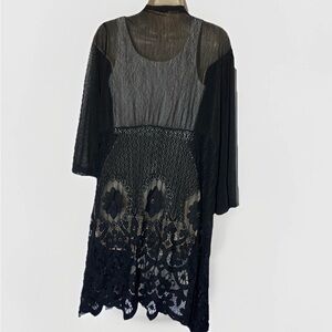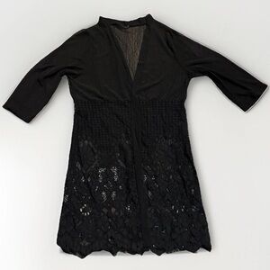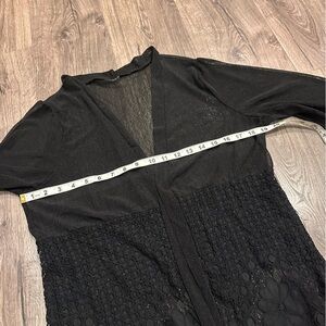 Kimono Cardigan Lace Cover Up One Size Black Mesh Boho 3/4 Sleeve Whimsigoth