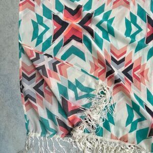 Kimono Cardigan Womens Size S/M Aztec Ivory Open Boxy Fringe Bohemian Cover Up