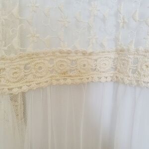 KIMONO DUSTER MESH CROCHET EMBROIDERED FLORAL DESIGN LONG SLEEVES CREAM ( S )