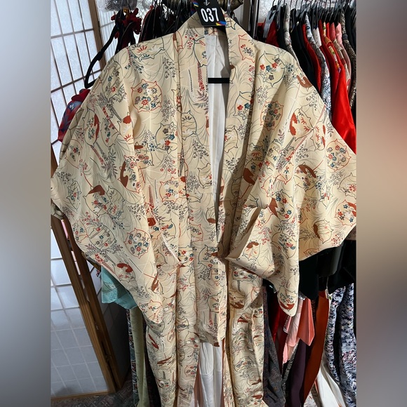 Step into timeless beauty with this exquisite vintage kimono robe, featuring soft pastel tones and intricate floral patterns. Made from lightweight, breathable fabric, this piece drapes beautifully and can be styled as loungewear, a statement layering piece, or even as a dreamy duster over your favorite outfit.