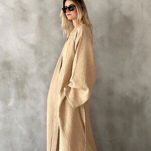 Soft, light and luxurious, this super comfy robe features fluffy 4-ply gauze, a snug waist tie and two hidden side pockets! Made from premium 100% long-staple Turkish cotton and designed to have a relaxed, one size fits all!