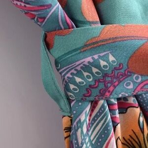 Kimono Robe Duster in Green with Cosmic Display Open Front, Matching Belt